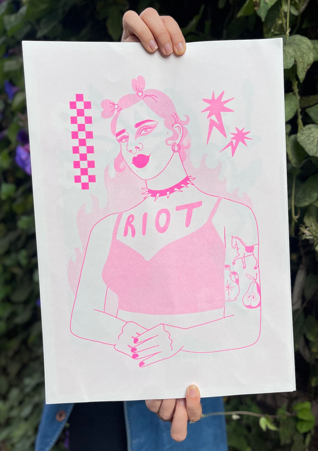 Une impression en risographie en A3 (29,7 x 42 cm)